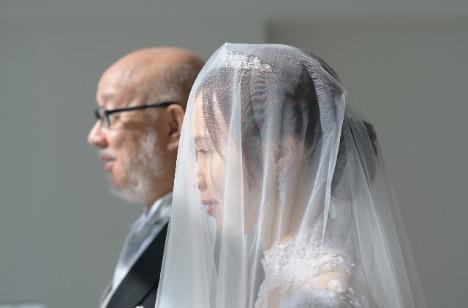 ウェディングドレスとタキシード姿のおふたりは、チャペルで親御様と初めて顔を合わせるファーストミートを行い、ジャケット・グローブセレモニー、ベールダウンで感動の入場となりました。結婚の証人は、ゲスト皆に、ボードに色とりどりのシーグラスを並べていただき、完成させました。挙式後の屋上テラスのウェルカムパーティでは、ゲストよりバブルシャワーでお迎えいただき、ゲストとの写真撮影や会話の時間を楽しまれました。