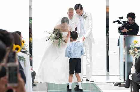 挙式では、リングボーイにも協力していただき、青い海と空に囲まれたチャペルにてアットホームな挙式となりました。また挙式後には、屋上テラスにて、葉山のお土産プルズを。都内や遠方から来てくださるゲストへ、夏休みに小旅行に来たような気分になってほしいという思いから、海が目の前にあり、非日常を味わって頂ける葉山という場所に来て頂いたからこそ、あえてブーケプルズではなく、葉山のお土産プルズを行いました。