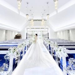 【天井高6m!光輝く感動のクリスタルチャペル】ウエディングステージには、驚きの光の演出☆ウエディングドレスを光輝かせる演出満載!フェアでは当日気分の入場体験や憧れのフラワーシャワー大階段も体験できます