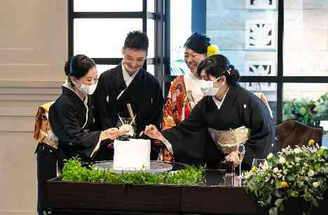 神前式後のご披露宴、和装だからこその演出はたくさん出ました! ・鏡開き・みたらし団子タワー・ちらし寿司・てまり寿司・おむすびバイト…ただ、やっぱりケーキで進めました! バイト時は、ファーストバイトの前に『ラストバイト』の演出を♪ご両家のお母様がサプライズで呼ばれケーキ台へ。大切なお子様へのラストバイトは驚きもありましたが、笑いも交わりながら大切な瞬間としてご両家に刻まれました。