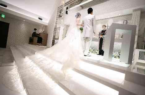 大切な家族やご友人だけでなく、会社関係の皆様やおふたりが出会ったきっかけである恩師…皆様に囲まれながら厳粛に執り行われました。 広さをしっかりろ兼ね備えている為、90名近くのゲストの皆様もゆったりとおふたりのお姿を見届けておりました。 この日は梅雨も明け快晴の夏日!夏の日差しに負けないくらい美しい白亜と光の空間で永遠を誓い合いました。