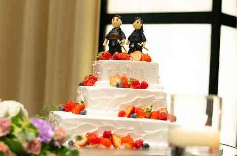 出会ったきかっけは約16年前のお稽古『剣道』ご両家ともに親御様を剣道を行っており、おふたりもその流れで剣道に通い始める。 月日が経ちお付き合いが始まるのもやはりお稽古があったからこそ。 ケーキはパティシエとのお打合せでおふたりらしく『剣道着』を着たおふたりを。 運ばれた瞬間の皆様の歓声は大盛り上がりでした。 ケーキの他に乾杯の発声はおふたりの恩師が行う等…ところどころらしさ溢れる進行でした