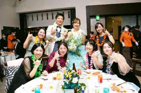 旅行も難しいご時世の中でも、ご列席いただく大切な皆様には、少しでも『非日常的』を感じていただきたい! 非日常的な披露宴会場始め、 お色直しではおふたり手作りの『レイ』をつけて登場し、 ゲストの皆様へレイをかけながらラウンド! その他ゲストの皆様参加型の内容を盛り込み 結婚式にメリハリがつく様一緒に考えて参りました!