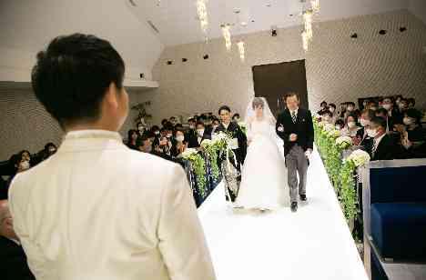 挙式のご入場シーンでは新婦様への最後の身支度『ベールダウン』はもちろん、 新郎様への最後の身支度『ジャケットセレモニー』の催しも行いました。 新郎様新婦様共にバージンロードは『ご両親』と一緒に歩むことを選択されましたおふたり。 バージンロードには『一歩=一歳』の意味があり 育ててくださったご両親と一歩一歩進んでいただきました。 バージンロードの幅が広いからこそ実現できる演出のひとつです。