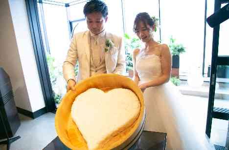 ケーキ入刀ではなく『おむすびバイト』をお選びいただきましたおふたり。 ご披露宴中盤に大きな桶が登場し中にはハート型にかたどりましたお米が♡ お互いにおむすびを結んで食べさせ合いました♡ もちろん、幸せの裾分けで結婚式結び前に幸せのお裾分けとして皆様にもおむすびが配られ、締めのお食事として大変ご好評でした♪