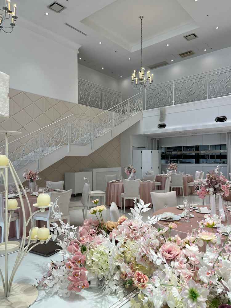 ピンクをモチーフにしたコーディネートが映える可愛らしい雰囲気も楽しめます。柔らかいピンクの装飾や花々が映える会場です。