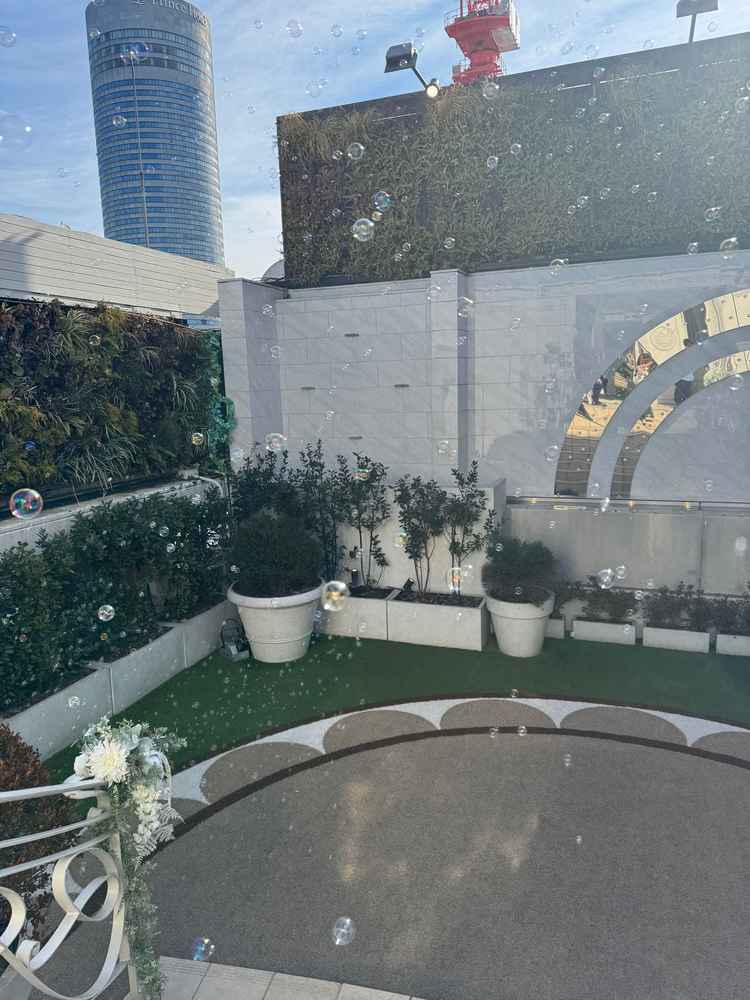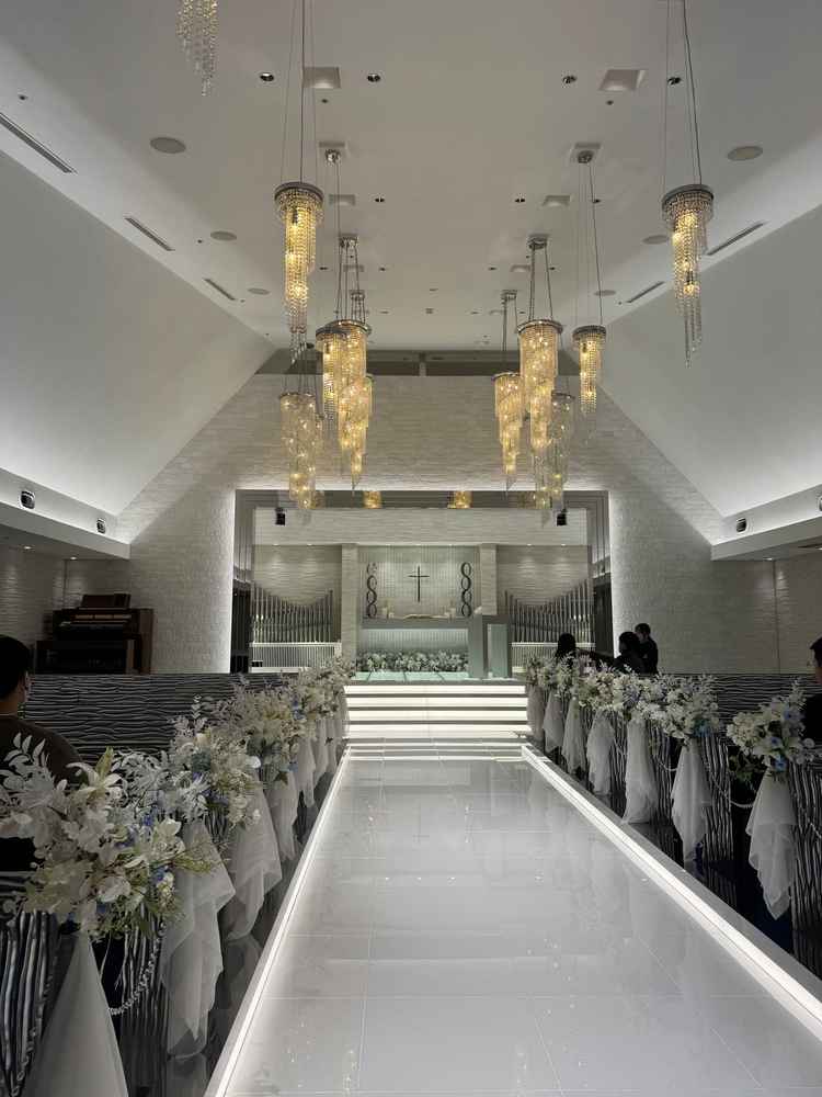 チャペルの照明の調整が珍しく感じた。ウェルカムパーティーの充実度も良い。披露宴会場はスクリーンが思ったより小さくて残念だった。