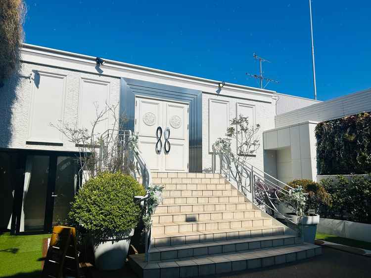 白基調の披露宴会場が自分の好みでした。ベースが白なので、自分好みにどうにでも化けると思います。キッチンが見えるのが良かった。