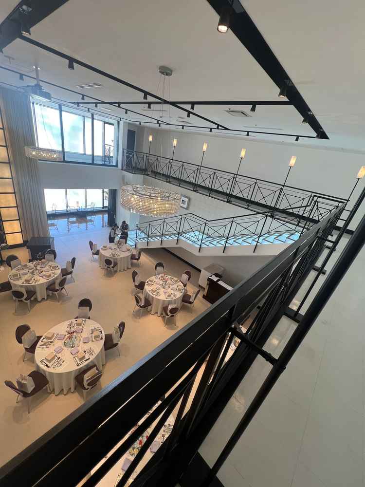 見学前に見ていた写真等より披露宴会場は開放的で外からの光も入り明るい雰囲気でした。 階段がある会場は演出がいろんな風にできそうだなという印象と入場が楽しみになる会場でした。