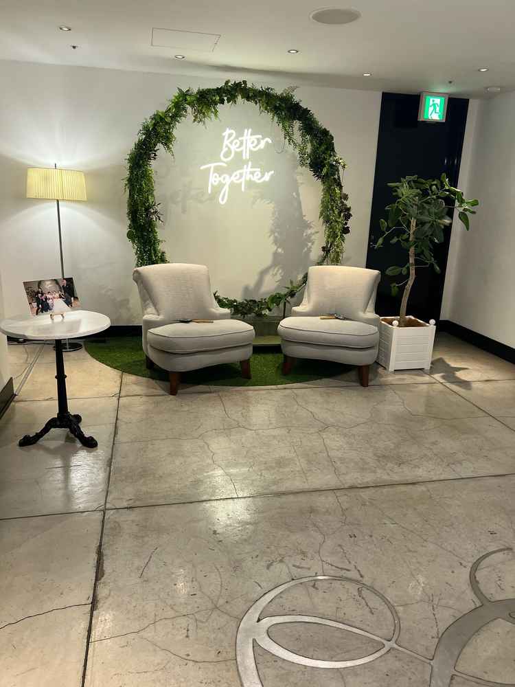 入場する階段があるところ、披露宴会場のテラスではスイーツビュッフェがサプライズで楽しめるところ、特にウェルカムスペースがある式場はなかなかないので魅力的です。 挙式の入場前に控室がありマジックミラーでゲストの姿が見えるところがワクワクしました。