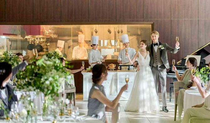杉本シェフ特製の豪華料理を無料試食!料理を大切にしたいおふたりにオススメです。また、料理の打ち合わせにはシェフが参加し、味・素材・アレルギー対応、おふたりにあわせた料理を提案!さらにガーデンで楽しむウエルカムパーティやデザート・お茶漬け等ビュッフェも充実。