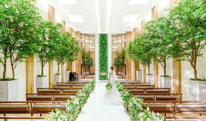 ポイント屋内にいながら緑を感じるけやき並木のチャペル