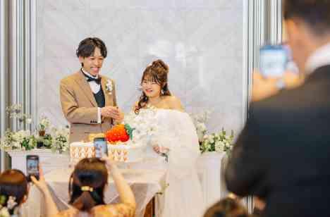 披露宴のメインイベント、ケーキセレモニーでは大きな苺がのったケーキが登場!ファーストバイトで新婦から新郎へまたまたサプライズを用意しました。「お嫁にしてくれてありがとう」とチョコペンで手書きしたフォーククッキーの登場です!実は元パティシエの新婦、朝クッキーに手書きでメッセージを書いて準備をしました。