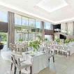 大きな窓からは青空や緑が楽しめる開放的なパーティ会場