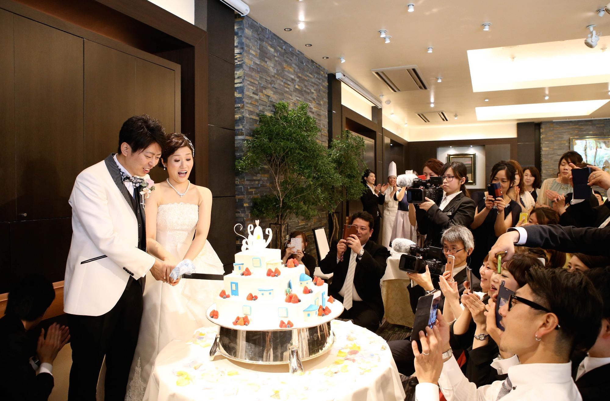 お祭りのように笑顔溢れる1日に したく、担当の武田さんと打ち合わせを 重ねました。 パティシエさんにお願いをした 「ヴィラサントリーニ」をイメージした ウェディングケーキ。 そのクオリティーには感動しました!