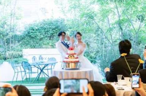 ご家族の事が大好きなおふたりは、挙式ではしっかりと一つの区切りとしてけじめを伝えたい、披露宴ではゲストに思いきり楽しんでほしい、という想いがありました。クスっと笑えるウェルカムスピーチやゲストが思い思いに席を立ち自由に過ごすフォトタイム、ガーデンの緑に囲まれながらの目隠しケーキバイトなど、おふたりが自然体だからこそゲストも肩肘張らずアットホームに過ごせる演出を一緒に考えお打ち合わせをしてきました。
