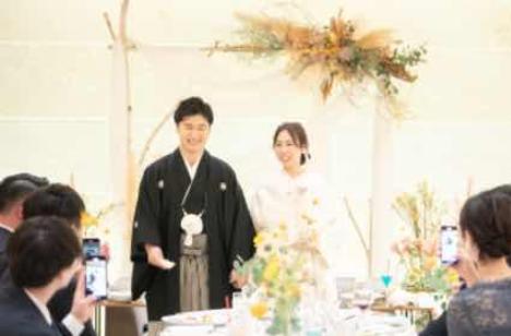 お色直しはスタイリッシュな洋装から上品な白無垢へ雰囲気を変えてご登場!シンプルな会場だからこそどんなお衣装もマッチします。おふたり色に印象を変えて、新鮮なお気持ちでまた皆様と過ごすことができるのです。格付けゲームは、ここにいる全員に楽しく過ごしてもらいたいというおふたりのお人柄がつまった企画。ゲスト同士の会話も弾み距離が近づき、皆んなで一緒に楽しむ一体感が生まれました。