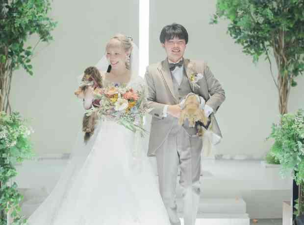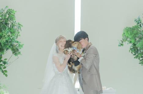 チャペル内人前式では、おふたり念願のリングドッグを行ないました。わんちゃんも大切なご家族だからこそ、一緒に過ごせる空間はエルダンジュならではです。家族が全員がチャペルにそろったあとは、「笑顔のたえない うるさいくらい明るい家庭築きます」と、これから先の人生も 家族みんなで仲よく楽しく歩んでいくことを、おふたりらしい言葉で誓いました。
