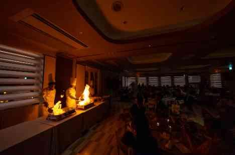 メインディッシュは、シェフに扮した新郎さまとそのお父様の登場とともにはじまります。岩塩で包まれたお肉を、ゲストの目の前でフランベして仕上げるパフォーマンスはライブ感満載!「こんなのはじめて!」とゲストからは歓声が沸き、ゲスト同士の会話も自然と弾んでいました。ゲスト想いのおふたりと過ごす披露宴は、その他にもこだわりの演出やおもてなしが盛りだくさんでした。