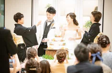 なるべくゲストと過ごす時間を多く持てるようにしたこと。私達のために時間を割き、遠方から来てくださったゲストもいたので、少しでも多くゲストと話せる時間を作りたいという思いがありました。なのでプロフィール紹介をサプライズでゲストにインタビュー形式で答えてもらったり、なるべくゲストと近い距離で同じ空間を過ごせるように、とプランナーさんにお願いをし、進行を決めてもらいました。