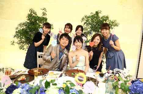 料理でサプライズの演出を行ったり、ドレスの色当てクイズなど、ゲストも一緒に楽しめる演出を組み込みました。 そして演出だけではなく、ゲストとのコミュニケーションを取る時間も大切にするよう心がけました♪ 手作りのフォトプロップスも活躍してくれて、私たちも、ゲストの皆様も楽しんでくださっていて、本当に素敵な時間でした。