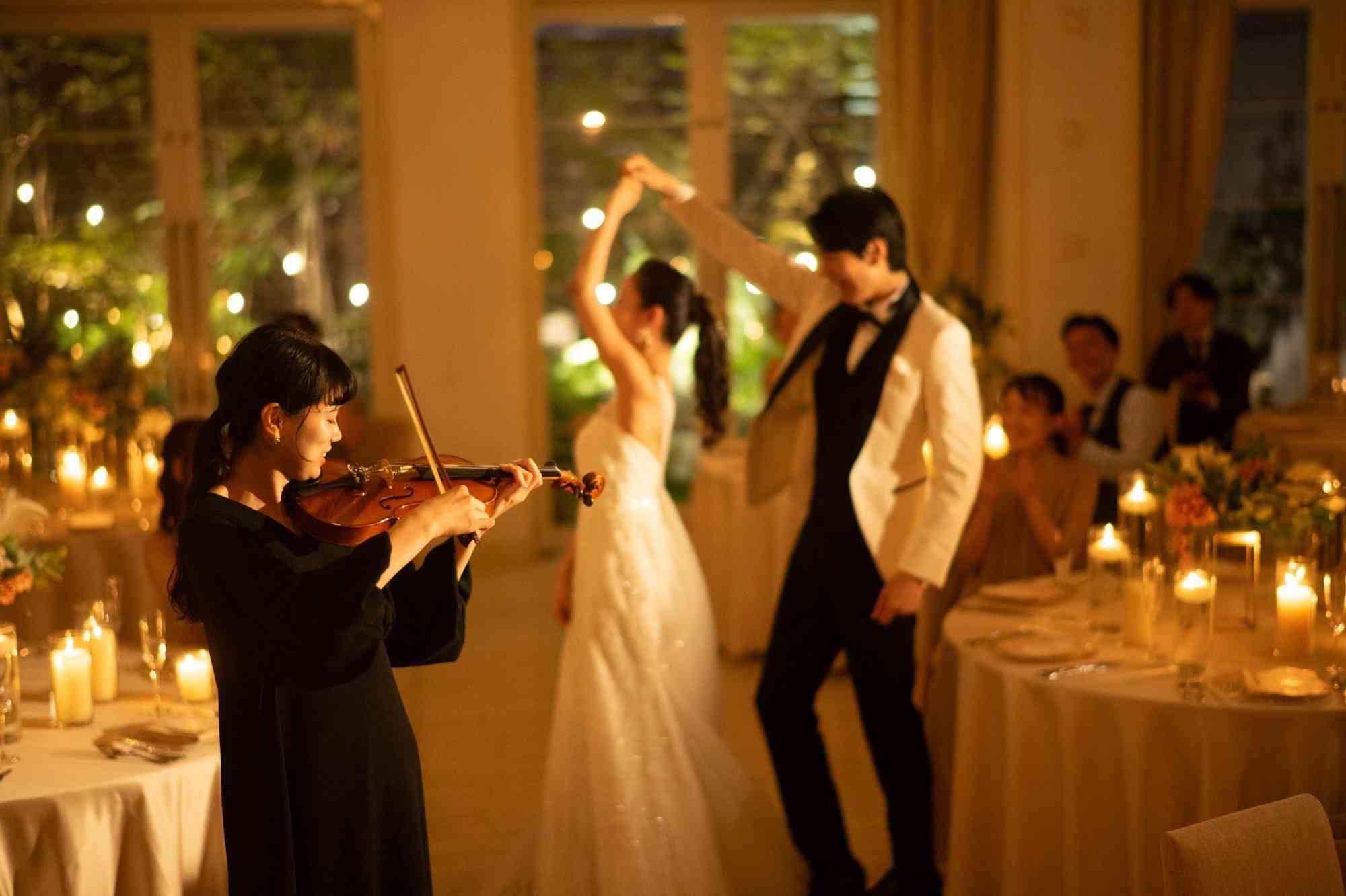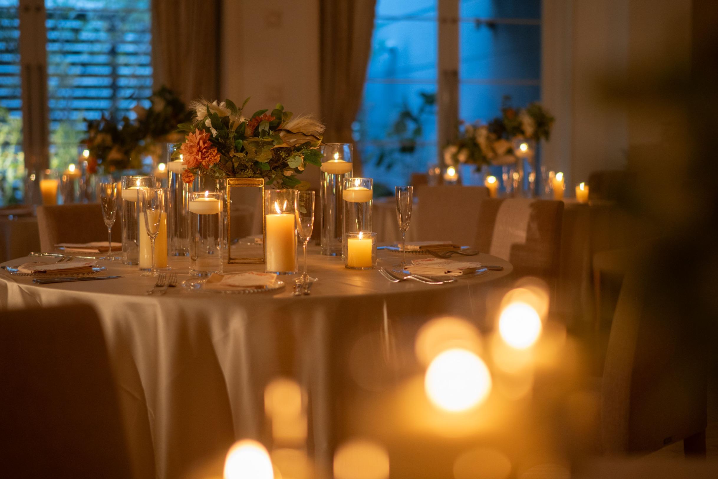 キャンドルの灯に包まれながら、ゆったりとゲストとのプライベート空間を楽しんで。 ロマンティックな空間に生演奏を入れて、美味しいお料理とお酒で贅沢な時間を堪能できる。