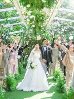 チャペル横の緑溢れるガーデンで、ゲストから祝福のフラワーシャワー を。挙式後にはおもてなしの【ウェルカムパーティー】も大人気。シャンパン片手にカナッペを摘んで、ゲストとのお写真タイムも楽しんで♪大人数が一度に出ても余裕な広さなのが嬉しい!