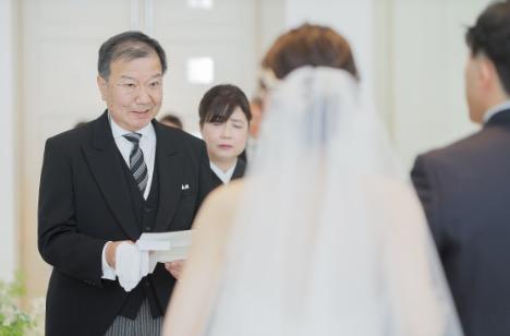 ご新郎様のご入場では、お父様とお母様に最後のお支度をしていただき、『せーの!』で『お背中ぽんっ!』これまでご新郎様がくるしい時、親御様はいつも温かく背中をおしてくれました。バージンロードは花嫁の人生を表すとされ、祭壇で愛を誓い退場する道は『おふたりで歩むこれからの人生』なのです。『ご新婦様と歩むこれからの人生』に今日は背中をおしてもらいたい!ご新郎様の想いが親御様にも伝わります。