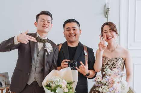 音楽やライブが大好きなおふたりはBGMにもとてもこだわってくださり、ドリンクメニューの裏にはセットリストも載せてくださいました。1日の始まりから終わりまで、おふたりの世界観を音楽でも表現します。そして、やわらかい雰囲気ではなくスタイリッシュでかっこいい写真がお好みのおふたりは、記録を残すことにもこだわってくださり、カメラマンをご指名してくださいました。前撮りからの絆で当日も3人の息はぴったりです。