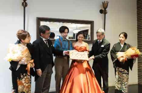 "親御様に感謝の気持ちを伝えたい"そんな想いもあったおふたりは、記念品として一枚の板からつくる木目のつながった「三連時計」を選びました。つながる木目が表すのは"三つの家族の絆"。これから過ごしていくそれぞれの時間の中で、離れてもつながっている家族の絆を感じてほしいという想いが込められています。おふたりの伝えたかった空気感がしっかりと全員に届いたことを実感し、おふたりの特別な1日は幕を閉じました。