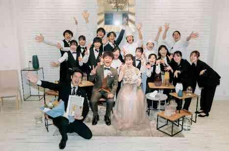 おふたりが当会場を選んでくださったのは、"スタッフを好きになったから"と、"こだわりを叶えてくれる会場だから"とのこと。スタッフさえも大切にしてくださる、思いやりのあるおふたり。そんなおふたりにご結婚式が結んだ後、会場からサプライズ!スタッフみんなでおふたりのご結婚式の成功をお祝いしました。そんな愛にあふれるおふたりと一緒に、素敵なご結婚式をつくれたこと、心から幸せに思います。