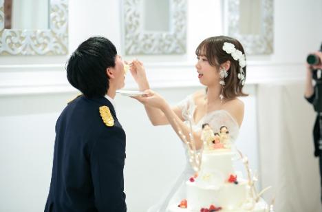 披露宴では、こだわりの空間でゲストとともに楽しい時間を過ごします。そこに、新婦様が最後までこだわったウェディングケーキが登場!担当パティシエと何度も打ち合わせを重ねてつくった、世界にひとつだけのウェディングケーキです。ご新婦様の夢を叶えるために、おふたり専属のパティシエが、何度も試作を重ねてつくりあげました。おふたりの想いがつまったウェディングケーキに、ゲストからも大きな歓声があがっていました。