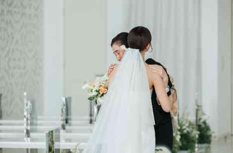 挙式の前には、新郎様と新婦様それぞれが親御様と向き合う、特別な時間を設けました。ほかのゲストがいない静かな空間だからこそ、これまでの感謝や想いを丁寧に伝えることができました。 新郎新婦にとってはもちろん、親御様にとっては「子育ての卒業式」特に実家を巣立つ新婦様は「住むところははなれてしまうけれど 私は変わらず娘だよ」と親御様の心に寄り添った気持ちを届けられました。