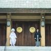 【伝統の神前挙式】空と緑に包まれた四季の彩を感じられる神殿。広い池にわたされた橋の上を、晴れ着で着飾った新郎新婦が一歩ずつ進んでいく「参進の儀」。フェアでは神殿や参進の舞台をご見学いただきます。