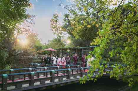 東郷神社の美しい日本庭園から始まる「参進の儀」。 参進の儀には、「過去・現在・未来」が合わさる、三位一体を表していると言い伝えられています。おふたりの“過去”を支え育ててくれたことを、親御様ともに歩むことであらためて実感する儀式となります。これまで大切に育ててくださった親御様への感謝の気持ちをかみしめながら、一歩ずつ歩まれます。