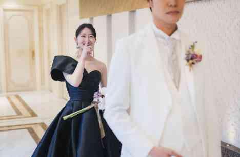 結婚式当日までご新郎にドレス姿を秘密にしていたご新婦♡ ドレス姿は一番最初に新郎にみせたいとファーストミートになさいました。 後ろから肩をたたかれゆっくり振り返ると、ブラックドレスに身を包んだ笑顔のご新婦♪ お互い少し照れながらも幸せいっぱいの表情に、スタッフの心もときめきました(^^)ふたりだけの思い出に残る瞬間です!