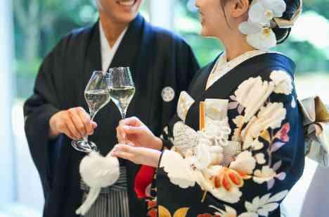 ご新郎の希望により、パーティー入場時には黒引振袖へとお召替え。 格式高く、伝統的な花嫁衣裳であるこの装いには「嫁ぎ先の家風に染まる」という意味が込められています。 その由来を、ご新郎が会社の方から教わったそう。 おふたりらしさを感じられる一着で、新たな人生の門出にふさわしい、心に残る特別な瞬間に。