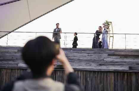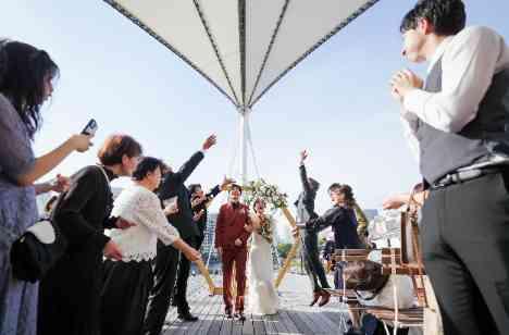 ご親族様との会食を終えた後は友人も合流しての挙式をご提案。解放感抜群のルーフトップで、アットホームな挙式となりました。 運河からの風と、水面に反射する光に包まれる空間は、他では味わえない空間。まるで海外のリゾート挙式のような雰囲気に参列されたゲストの皆様も自然と笑顔に♪ 距離感も近いからこそ生まれる感動の瞬間。