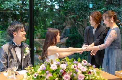 お二人はご家族・ご親族様でのご結婚式を予定。しかし、挙式当日ご新婦様へのサプライズをご新郎様がご用意。ウェルカムスピーチ後にスペシャルゲストとして、登場したのはご新婦様の大切なご友人。ご新婦様とご友人の目には涙が。大切なゲストの皆様がお揃いになり、ご披露宴の中でお二人の結婚証明書の完成。お二人とゲストの皆様の思い出に残るお時間となりました!