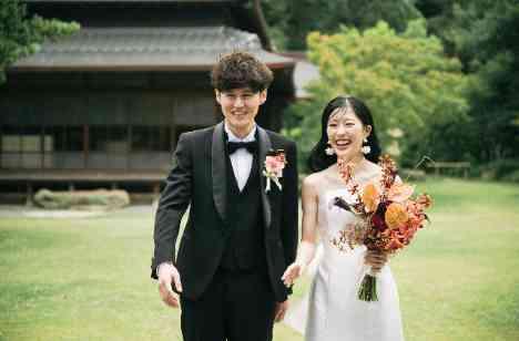 ご披露宴の中では、テラスでのお写真撮影の時間をご用意。旧貝島邸をバックに高宮庭園茶寮らしいお写真を残して頂きました。会場内だけでなくテラスでお過ごし頂くことで、お二人もゲストの皆様もゆっくりとお話をしながらお写真撮影のお時間を過ごしていただけます。ゲストの方それぞれとグループ写真を残して頂けました。