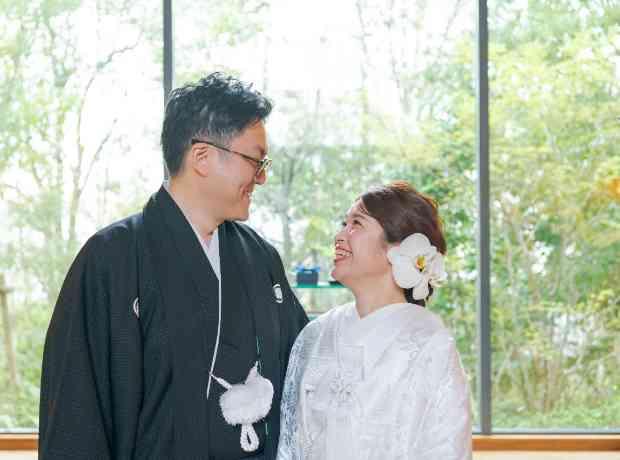お二人はご結婚式の中でゲストの皆様とゆっくりとお祝いができる時間を創りたいという想いがありました。純和風な雰囲気と文化財で過ごす一日はご親族の皆様にも楽しんでいただけると感じ、高宮庭園茶寮を選んでくださいました。ご親族の皆様に楽しんでいただきながら、和の雰囲気だからこそできる進行を取り入れて頂きました。