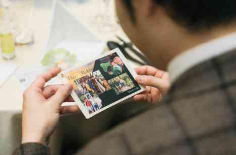 ご披露宴の中では、プレゼント大会やフォトタイムの時間を設けることで、ゲストの方全員とお写真やお話の時間を過ごして頂きました。感謝の気持ちはしっかりとお二人の言葉としても伝えて頂きました。そして、ご新婦様からのお手紙朗読の際には、スクリーンに思い出写真のムービーを上映され、鮮明に当時の記憶を思い出して頂くことでより感動的な場面となりました。