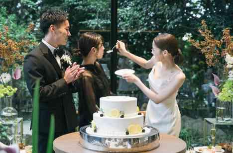 ケーキ入刀後、お二人同時にファーストバイト。新郎様から新婦様へは「一生食べるものに困らせない」新婦様から新郎様へは「一生美味しい料理を作ってあげる」という思いを込めてファーストバイト。その後は、お二人を繋いでくださったキューピットの方にも感謝の気持ちを込めてサンクスバイトを実施。素敵なご縁をありがとうございます。