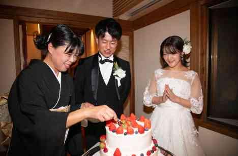 ウェディングケーキ入刀を行う前に、全員でいちごの装飾を実施。まずはご友人・ご家族に装飾をして頂き、最後はお二人にて実施。皆様に想いを込めて頂きながら完成したケーキにてご入刀。 そして、入刀後はファーストバイトを実施。それぞれの願いを込めて行っていただきました。全員で完成させたケーキでの入刀セレモニーは、より一体感を感じるお時間となりました。