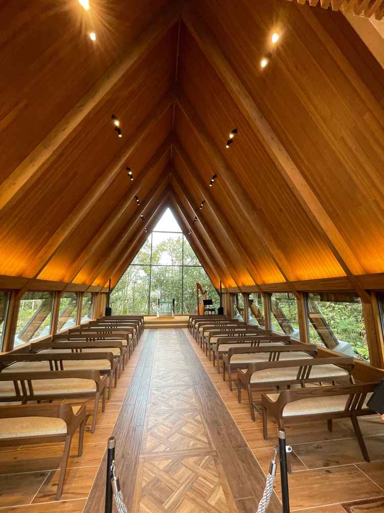 茶室でのお茶のおもてなしが素敵でした。 挙式会場では、下の方に窓があり、ゲストの方からも緑が見える造りになっておりとても驚きました。