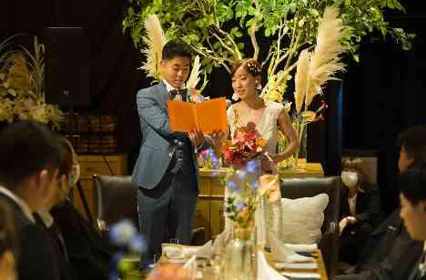 お二人は『ご家族への感謝の場』をこのウエディングパーティーのテーマにしました。 幼いころのお父様との思い出、一度は疎遠になってしまったご家族もあるきっかけでまたひとつになりました。 そんなご家族、出会うきっかけになった今まで支えてくださったゲストの方々に感謝の気持ちを伝えたい。 ゲスト全員が主役になれる温かいパーティーを創りました。