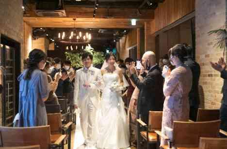 お二人は大切なゲストの前で結婚の誓いを立てました。 CEDAR THE CHOP HOUSE&BARのチャペルとお二人の晴れ姿がとても映え綺麗な姿に皆様うっとりされていました。 また、お二人が歩くと皆様との距離が近いので皆様の顔を見ながら誓いを立てることができました。 緊張もほぐれて笑顔で溢れる挙式となりました。