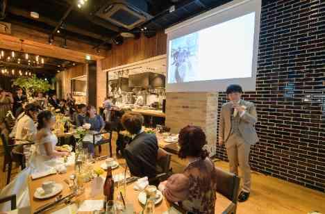 ゲストには緊張せず、いつも遊ぶときのように気を使わず楽しんでほしいという思いから、余興はあえてお願いしませんでした。その代わり、主人が解説の仕事をしていることもあり、私の生態を解説してくれるというユニークな演出を行いました。動物に例えて、日常生活での習性やこだわりをスライドで発表するという独特な内容でしたが、ゲストにとても好評でした。
