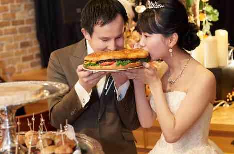 一つひとつ積み重ねたハンバーガーは、 これまで歩んできた時間、出会い、支えてくれた人たちの想い。高く積み上がるほどに、 会場には驚きと笑顔が広がり、 「ふたりらしさ」が自然と伝わります。 ケーキの代わりに選んだのは、 形式にとらわれない、心からの“おもてなし” ふたりの人生も、このハンバーガーのように、 笑顔と愛を重ねながら、あたたかく、幸せに積み上げていきます。