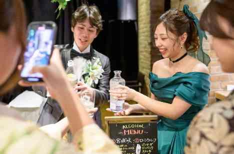 お酒が大好きな新郎新婦様。 とっておきのお酒を、みずからお振舞いされる演出も! 新郎新婦厳選のお酒はゲストにも大好評でした。 ゲストに直接感謝のお気持ちをお伝えになりながら、お酒をふるまう演出で、ゲストへおもてなしの気持ちを伝えました。 ご友人様からご親族様まで、会話も弾んで、全員が楽しめるアットホームな時間となりました。